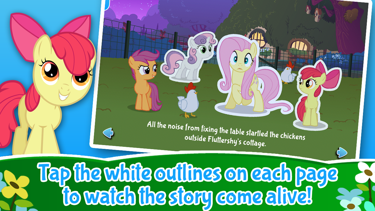 MY LITTLE PONY: Fluttershy is the newest, highly interactive storybook app from PlayDate Digital. A springtime fable that is perfect and appropriate for preschoolers, this new storybook app is designed to help emergent readers practice their skills while following the adventures of their favorite characters.