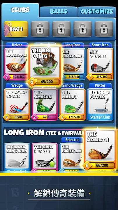 • 解鎖具有獨特屬性的傳奇球杆,在高爾夫球場上獲得優勢。