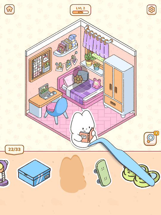 Chill gameplay: In our quest to make this a relaxing sticker game, we pulled out all the stops – the game mechanics are simple and straightforward, the graphics are cute and cozy, and the ambiance: adoring and amazing. Fun for both the young and young at heart, everyone will enjoy decorating various rooms with décor items and seeing the cute cats, bunnies, and more in their little spaces!