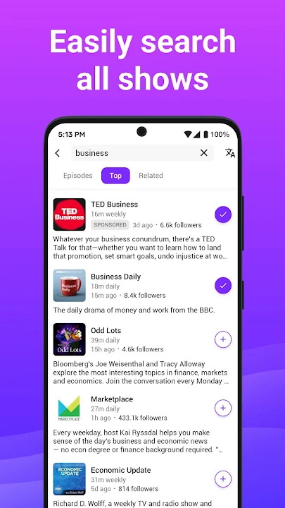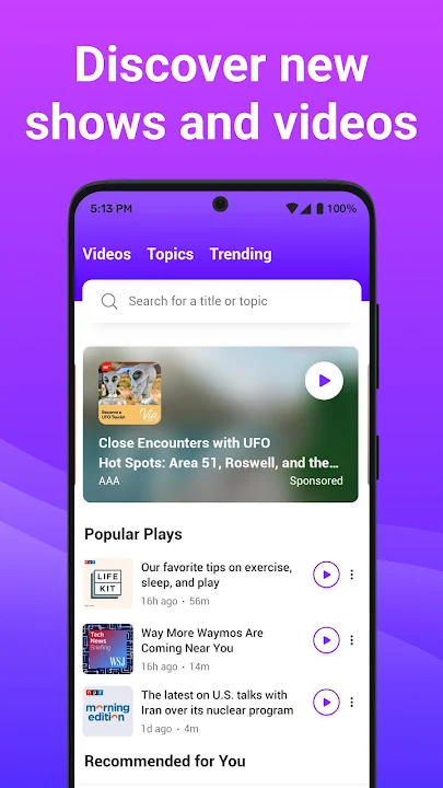 You can find your favorite shows and discover new ones focused on pop culture, news, technology, sports, comedy, true crime, and more! Plus, discover robust features for watching video podcasts, free audiobooks, documentaries, relaxing sounds and interviews easily by using our curated discovery categories and advanced episode-level search.