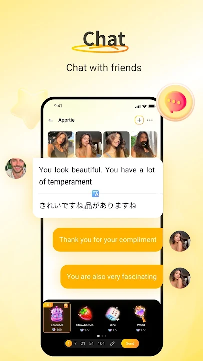 -Mangochat helps you break language barriers with its instant translation. Choose the new good-looking face you like, and start chat NOW! Have deep conversations with people you like, talk and immerse yourself from morning to night!