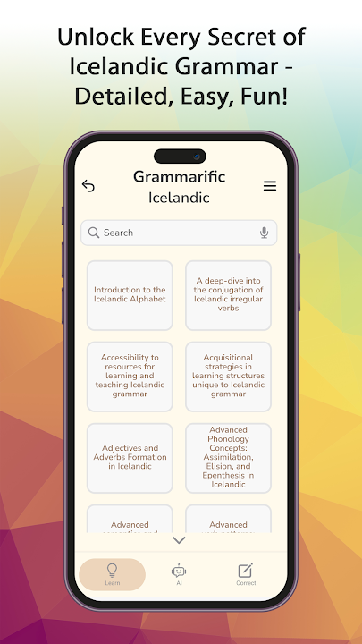 Embark on your language-learning expedition with "Grammarific Icelandic," an app that combines the thrill of discovering a new language with the convenience and precision of modern technology. Whether you're a linguistic enthusiast, preparing for an Icelandic adventure, or eager to connect with Iceland's rich literary tradition, this app will be your compass to navigating the complexities of Icelandic grammar.