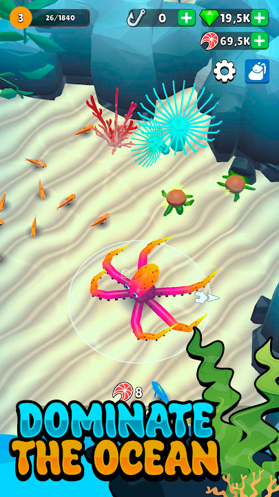 收集并升级海洋生物:解锁新的触手技能,召唤其他海洋生物与你并肩作战,让你的章鱼进化。打造终极海洋军团,击溃你的敌人!