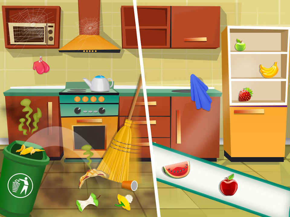 🏠 花园清洁:花园也很脏!让我们一起清理花园吧:把垃圾和灰尘扔进垃圾桶,扔掉脏兮兮的植物,种上鲜花,修理滑门,清洗脏兮兮的汽车。