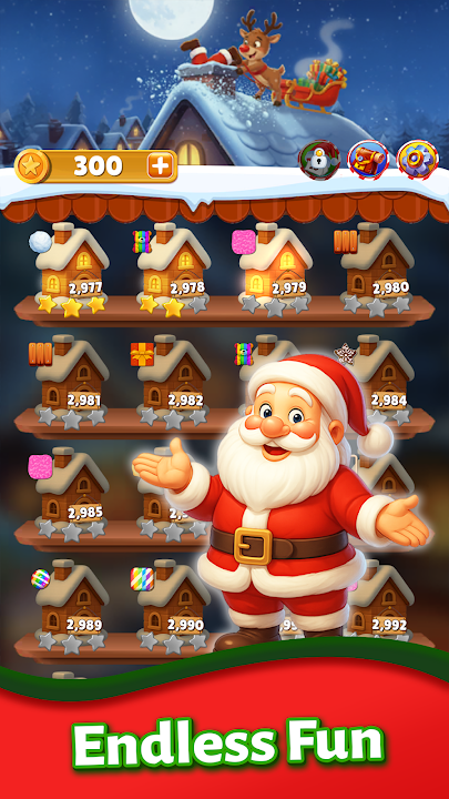 Enjoy a magical holiday match 3 puzzle adventure filled with festive cheer,
