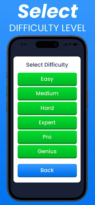 • Or choose from six difficulty levels (from Easy to Genius) and three grid sizes to make your own custom puzzles.
