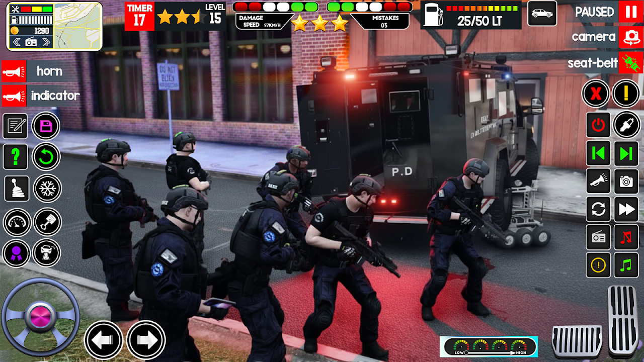 《城市警察模拟器》采用逼真且高度精细的 3D 图形环境,确保玩家获得沉浸式的游戏体验。为了提升用户体验,游戏还加入了导航辅助功能,包括清晰的方向箭头和战略检查点。