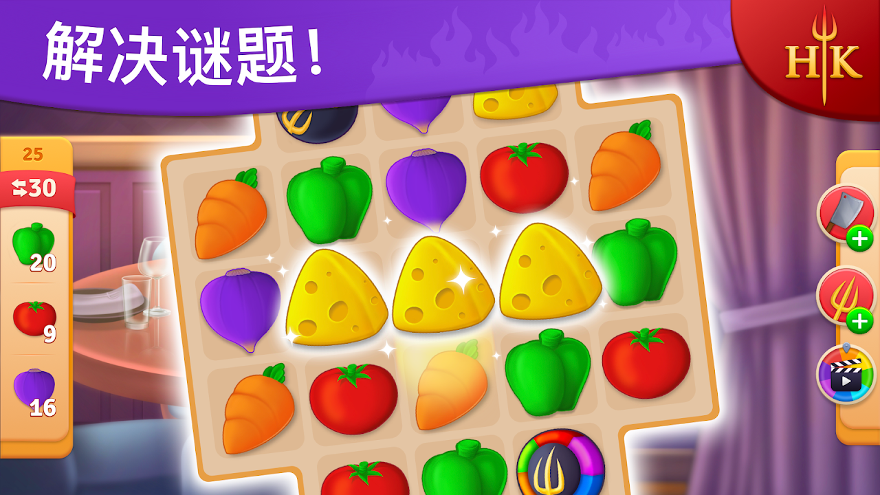 感受地狱厨房的氛围,帮助奥利维亚,通过解决三消谜题来恢复餐厅,实现她的梦想,击败竞争对手,找到同事,向世界开放这个地方!