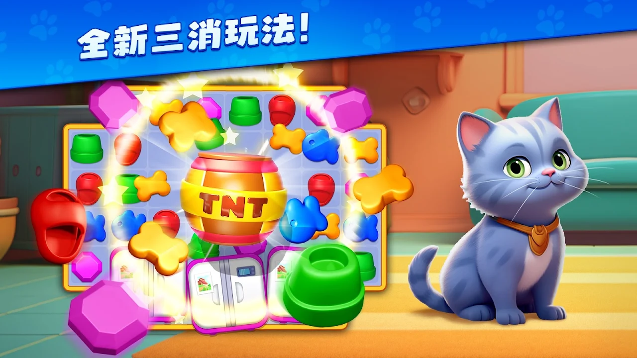 与萌犬萌猫展开精彩的三消冒险!