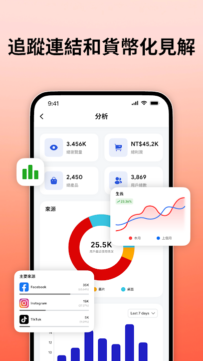 • 更多流量並衡量來自 Instagram 和 Tiktok 的投資回報率。