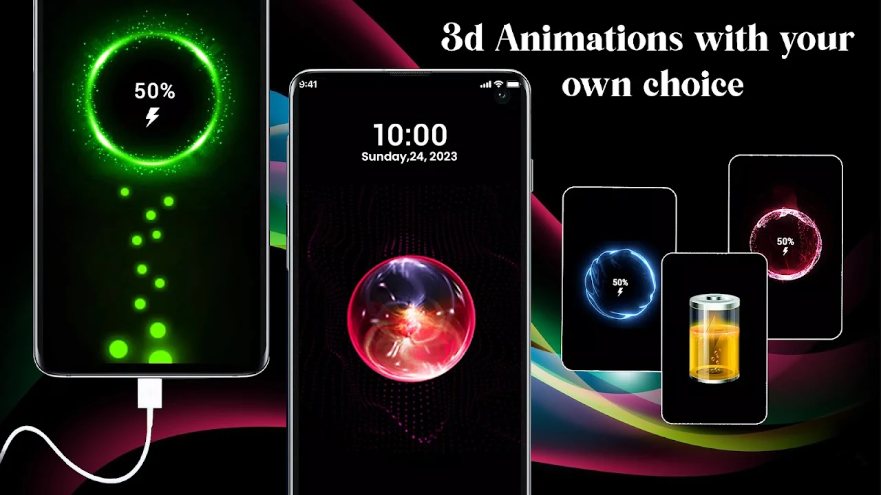 • 🎨 Multiple 3D charging wallpaper options to refresh your screen daily