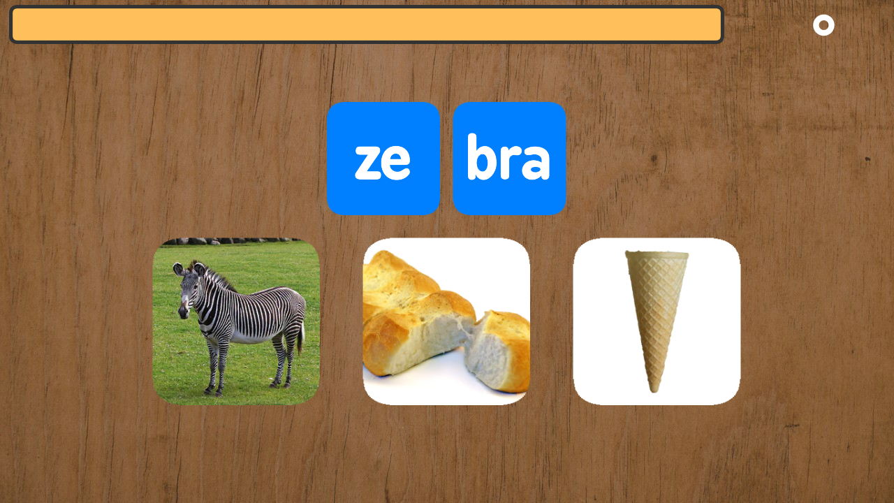 Read the word divided into syllables and select the corresponding image. When you select the right image you can move on to the next word.