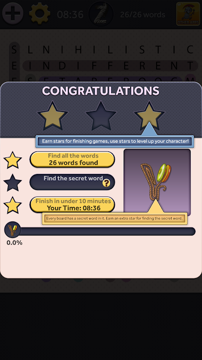 打开“简单单词搜索”立即开始游戏 - 无需注册账户或购买。所有游戏板均动态生成,因此您永远不会遇到相同的游戏板。完成谜题即可赢得星星并收集特殊字母字符。有趣且全面的单词词典让所有年龄段和技能水平的玩家都能享受游戏乐趣。有趣的音效和动画为这款经典的单词游戏锦上添花。