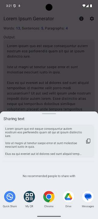 隆重介紹適用於 Android 裝置的一流 Lorem Ipsum 產生器!體驗無與倫比的靈活性,完全控制應用程式製作的單字、句子和段落的數量。輕鬆分享您的創作或將它們直接保存到文件中。