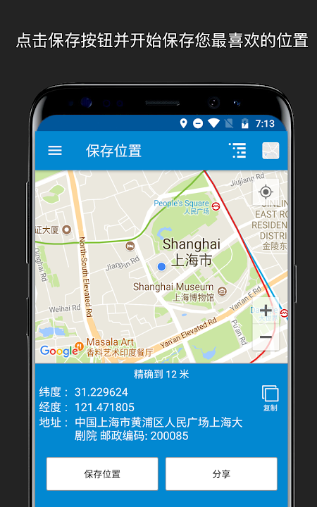 该应用可以让您保存当前位置,与朋友分享并将其用于导航。您可以享受它给您带来的便利,赶紧带上它去探索世界吧!