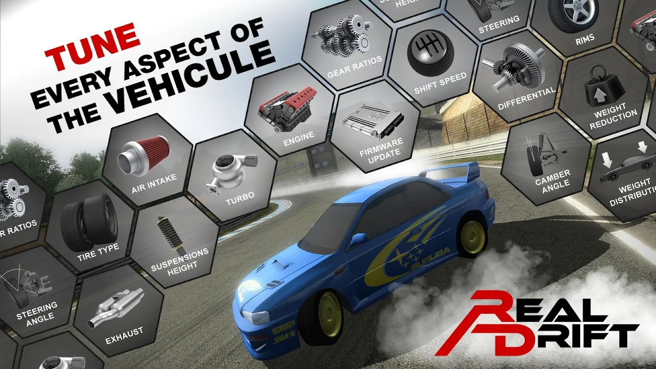 • 移动设备上最逼真的漂移赛车游戏;