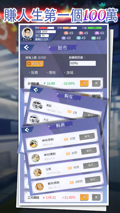 2、正常開一局,先把【打工】拉滿3000,然後【情緣】裏把想攻略的妹子的緣分刷上去。