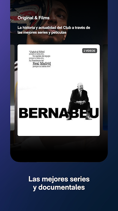 在您的手机上下载皇家马德里官方流媒体平台,沉浸在独家视频内容的世界中,包括激动人心的精彩集锦、皇家马德里电视直播、史诗纪录片、完整比赛以及来自世界上最好的俱乐部的数百小时视频。
