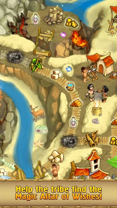Help the tribe find a new home and make it through to the magic Altar of Wishes. Your way won’t be an easy one, so get ready for real dangers and challenges. Keep collecting resources, constructing and repairing buildings and overcoming new obstacles in Island Tribe 2! Lead the tribe and make all their dreams come true!