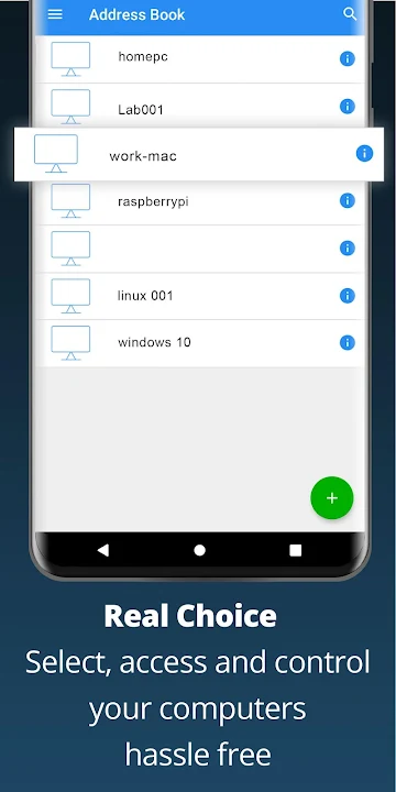 RealVNC® Viewer turns your phone into a remote desktop, giving you instant access to your Mac, Windows and Linux computers from anywhere in the world. You can view your computer's desktop remotely, and control its mouse and keyboard as though you were sitting down in front of it.
