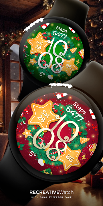 Festive Wear OS 表盘 - 用装饰品和灯光庆祝圣诞节