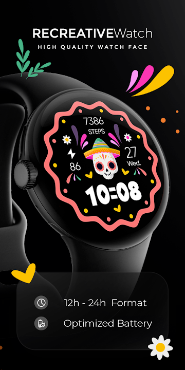 Celebrate Dia de Muertos (Day of the Dead) in style with our festive watch face. This vibrant design pays homage to this Mexican tradition with colorful sugar skulls, marigold flowers, and intricate patterns. Wear it to honor and remember loved ones with a touch of cultural flair. 🌼💀🕯️