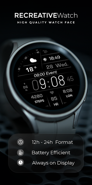 The Recreative Watch is a minimal timepiece that offers customization options and a casual yet stylish appearance. Health Tracking Watch Face.