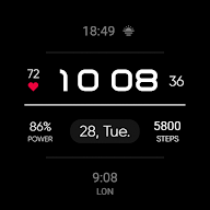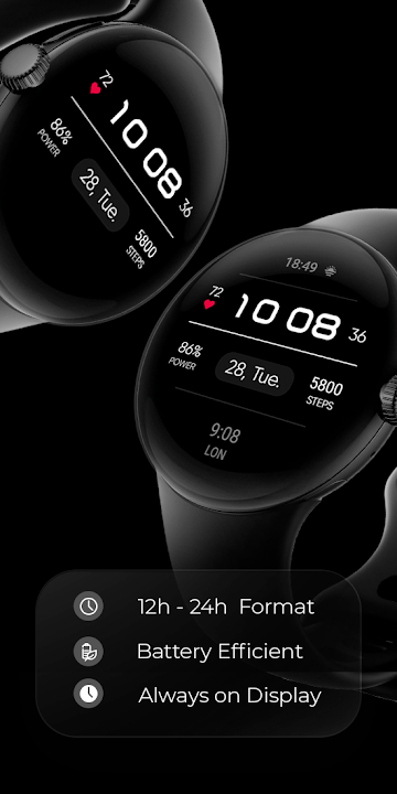 A minimalist Wear OS watch face design, emphasizing simplicity and ease of use. It features a clean, uncluttered display with essential information such as time and date, presented in a sleek and straightforward manner.