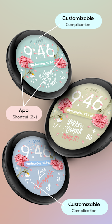 以優雅裝飾的 Wear OS 錶盤慶祝婦女節! 💐 讓這款別緻的配件向世界各地女性的力量和優雅緻敬。