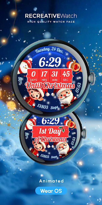 Wear OS 錶盤 - 動畫雪花效果 - 倒數計時和可自訂