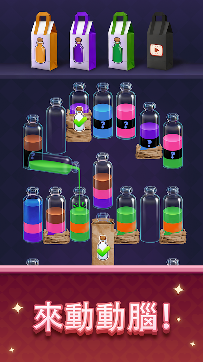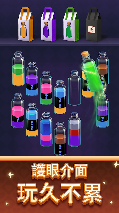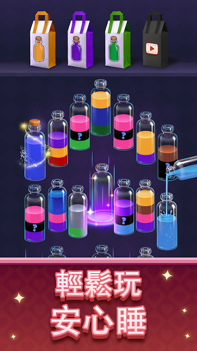 - 收集彩色瓶子:🎁 將瓶子裝滿單一顏色,瓶子會變成禮品袋。集齊所有瓶子,收穫滿滿成就感!