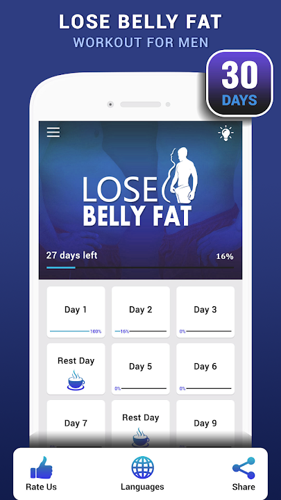Flatten your tummy. Home workout apps for men includes easy and effective stomach exercise to burn belly fat, upper, low belly fat and side fat at home. Get rid of excessive belly fat and get abs by following 30 days stomach fat burning exercises.