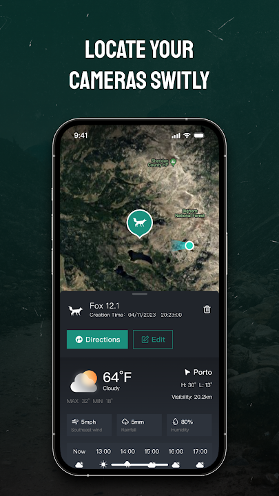 The Camovue App is a comprehensive monitoring and control application tailored for Camovue trail camera users. Receive snapshots and video footage for real-time monitoring. Get instant notifications and alerts for motion detection and tampering. Access local weather conditions for essential environmental information. Store all wildlife footage on the integrated Cloud service for data security and easy access.