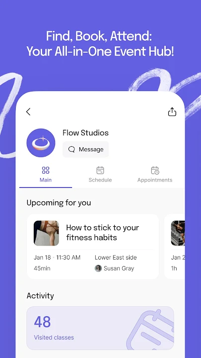透過使用 Brass Vixens 應用程序,您將能夠預訂新的面對面課程,並且您將能夠查看您已預訂的課程。您也可以管理您的帳戶並編輯您存檔的卡片。在該應用程式中,您將能夠查看可用課程的時間表。