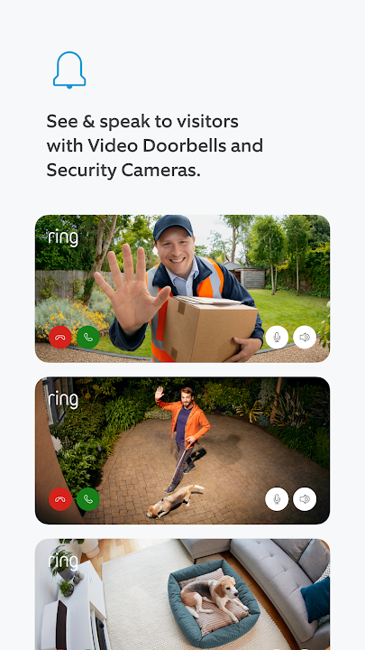 Know what’s happening at home from wherever you are with Ring Video Doorbells, Security Cameras and Alarm systems, and Smart Lights. Ring Doorbells and Cameras can send you instant alerts when someone’s at your door or motion is detected. Keep an eye on what matters with live HD video and greet visitors with Two-Way Talk. With a Ring Home Plan subscription (or free trial), you can review, save, and share Ring videos.