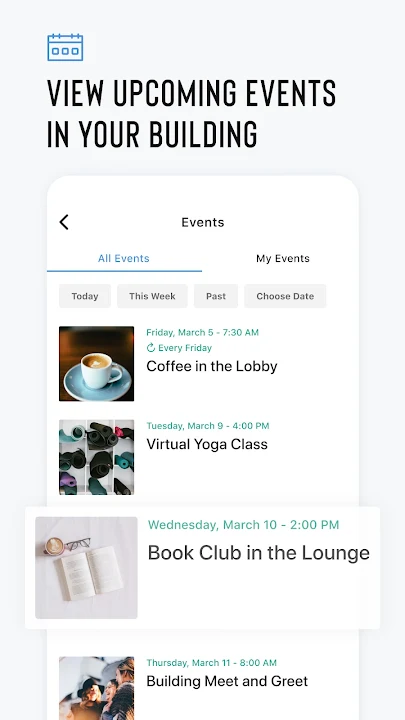 下载该应用程序以连接到您办公楼内的活动,包括: