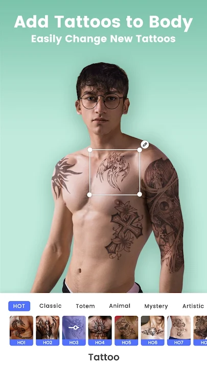 Easily add and change tattoos to your body.