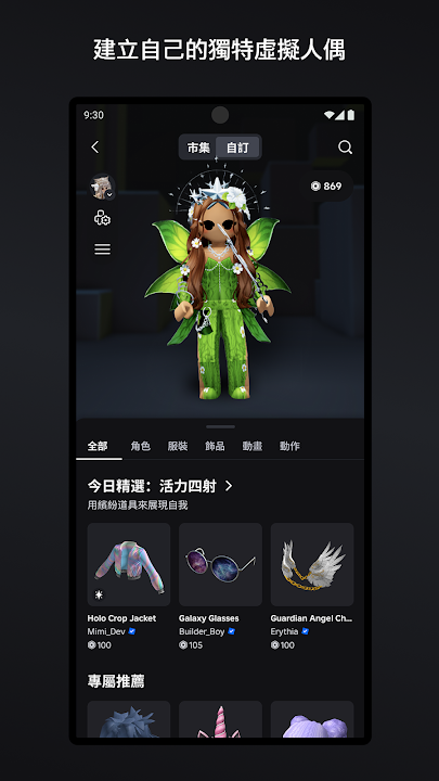 發揮創意,展現您獨一無二的風格!我們不斷地在型錄上推出新的帽子、上衣、面具、裝備等虛擬人偶道具,有無限種搭配的組合。