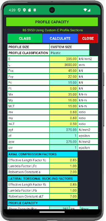 The app enables engineers to determine, section properties, section classification, and member strengths on the spot as you have several built-in profiles and more importantly custom profiles for manual input, and enables engineers to make quick decisions whether the member size is ok or needs to be revised, especially if you’re in a project where design keeps on being revised to meet clients requirements or for other reasons such as site constraints, material availability, and etc.