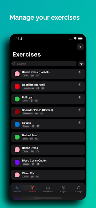 - 建立你的鍛煉並在漂亮的列表中管理它們