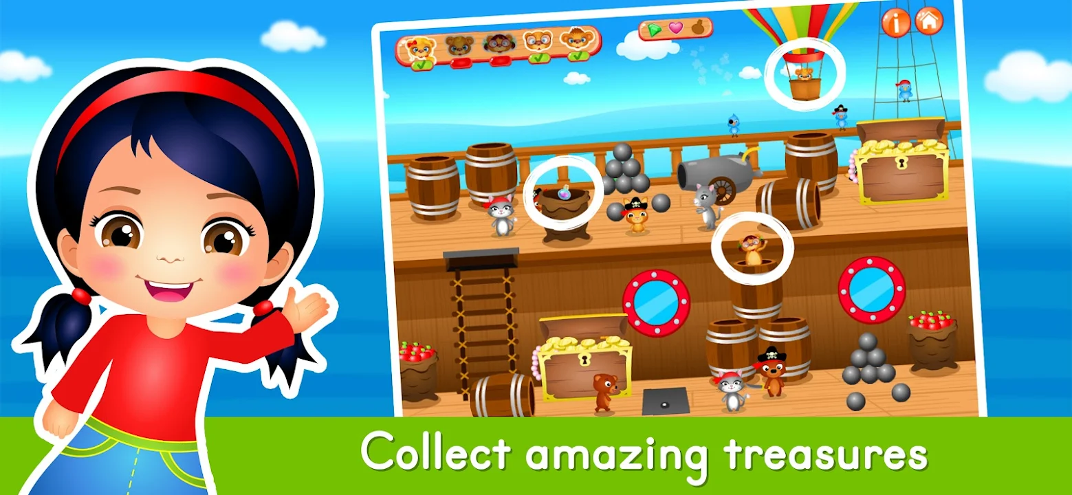 Hide and Seek Games for Kids. Finding hidden treasure games for Kids.