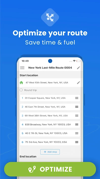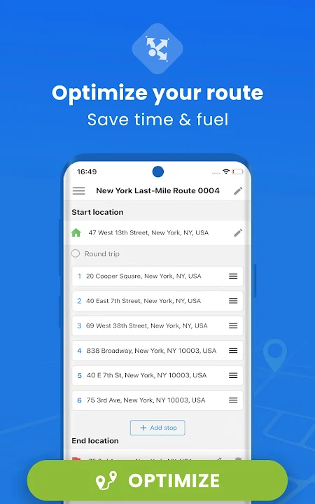 快速配送路線優化器。規劃行程、避開交通擁擠、節省時間和金錢。