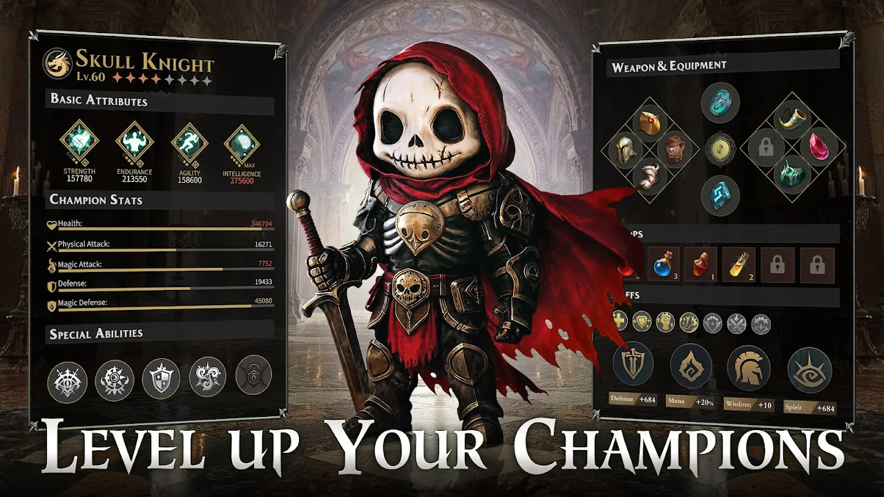 Equip and enhance your champions; unlock multiple artifacts to reveal new appearances and stories.