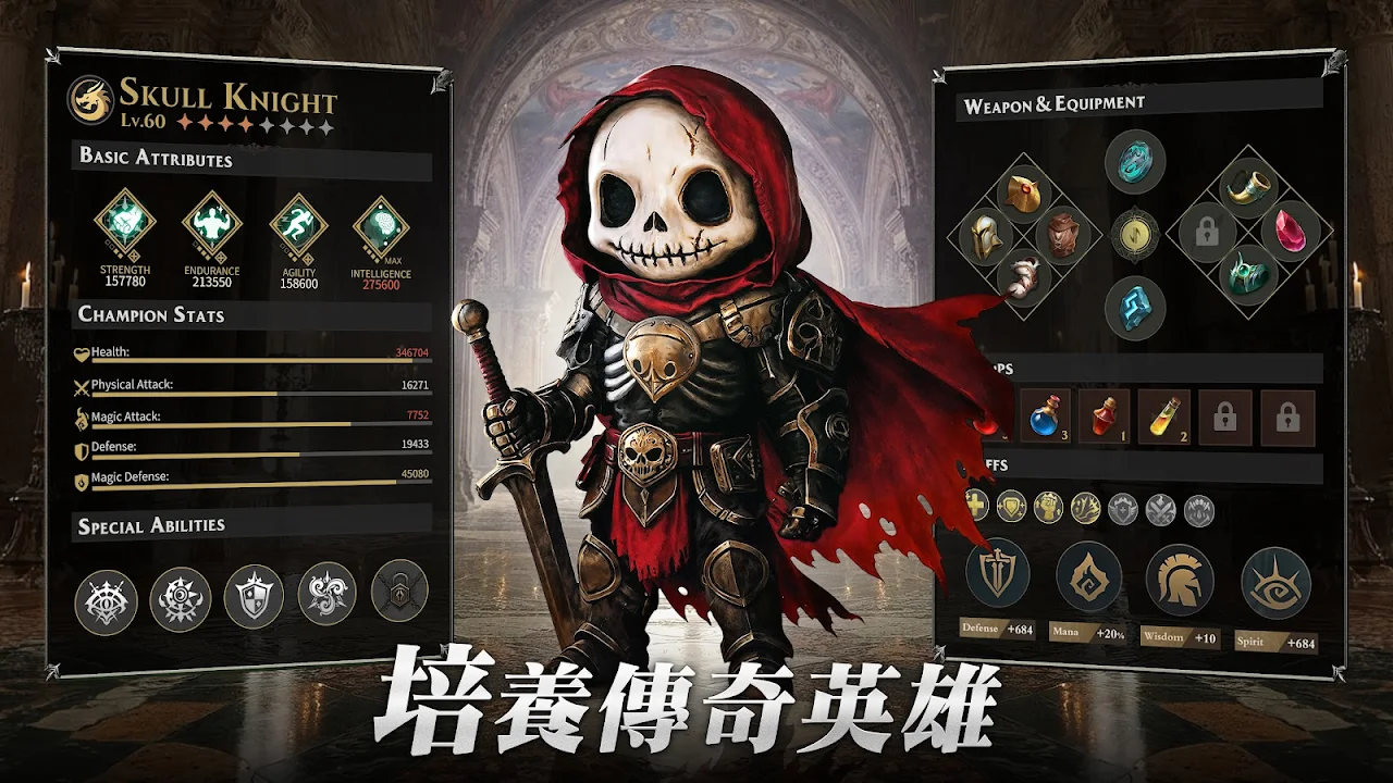 配戴裝備,升級英雄,提升英雄實力。解鎖英雄的多個神器,獲得全新角色造型,並開啟嶄新故事劇情。