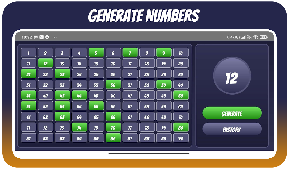Experience the ultimate convenience in generating random numbers for Bingo or Tambola or Housie with our state-of-the-art and user-friendly app! It's the top choice for effortlessly generating numbers for Housie or Tambola. Plus, with our app, you can even generated tickets , enhancing your Bingo or Tambola experience to the fullest. It's incredibly simple to use and boasts a stunning design!