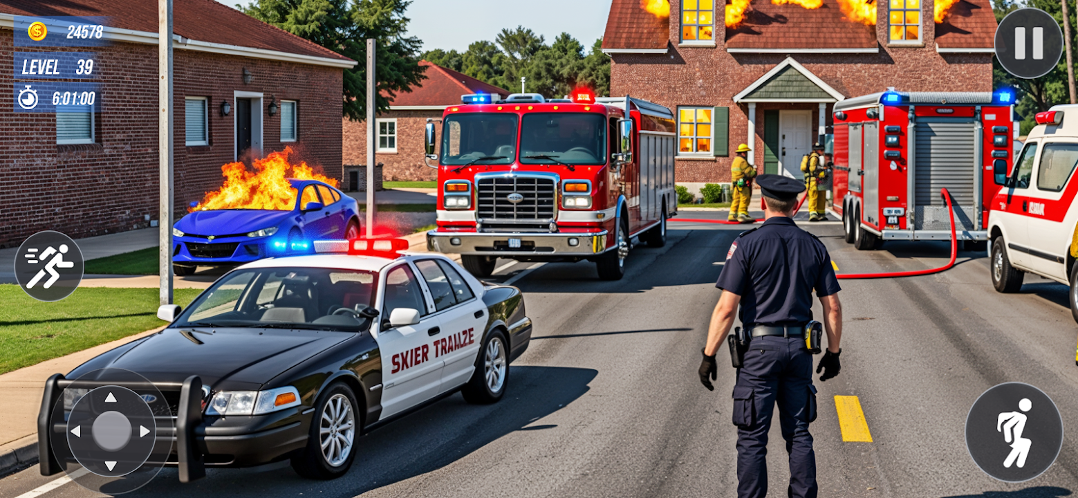在您的消防员生涯中,掌握不同的角色——从应对小型房屋火灾到应对重大救援挑战。在这款惊险刺激的开放世界消防车驾驶冒险游戏中,探索细致入微的城市环境。体验简单易上手的导航、友好的操控以及专为消防车驾驶爱好者打造的沉浸式世界。