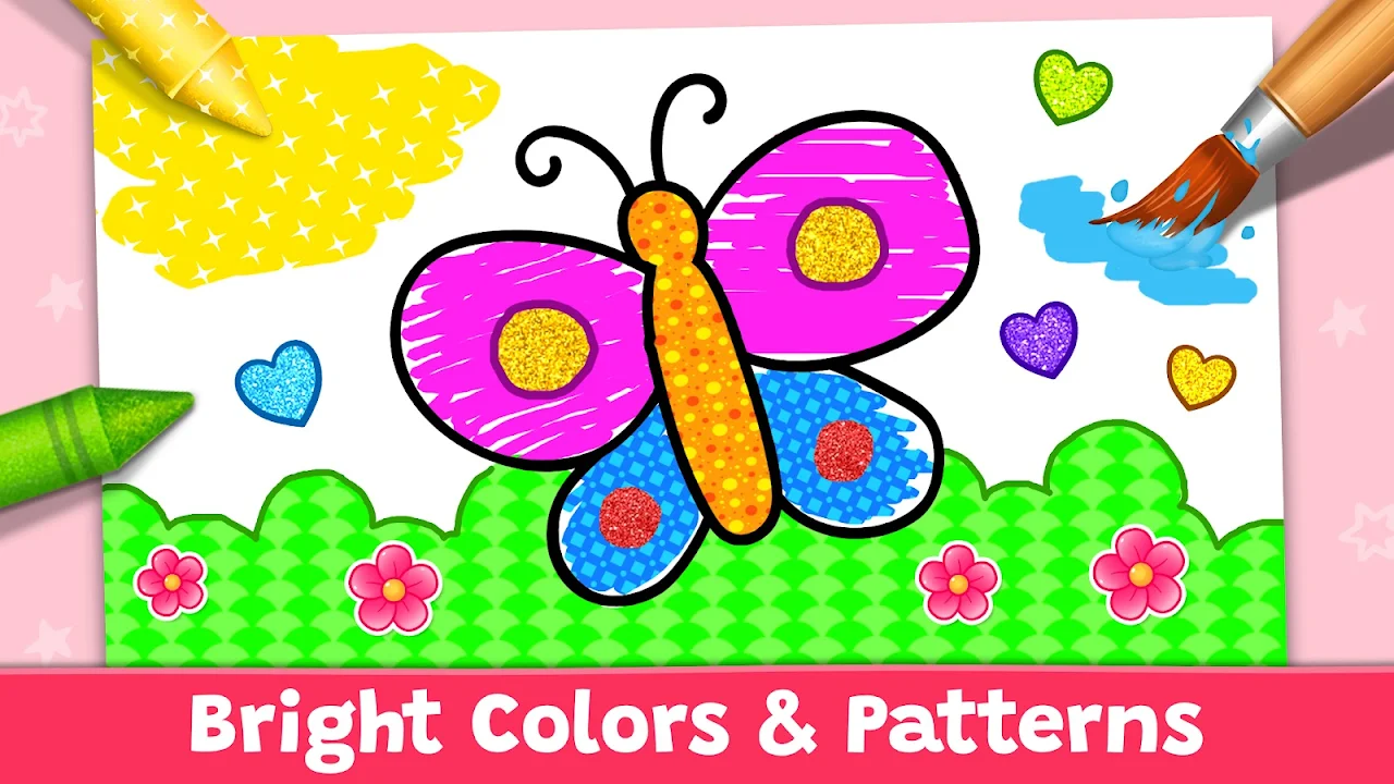 2. Color Fill - Use a wider variety of colors and options to paint the pictures, including stickers, glitter, crayons, and cute patterns.