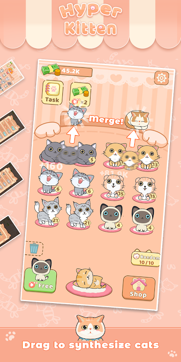 Ever wanted to own your kitten? Here are all kinds of cute kittens. You can connect to merge and discover cuter ones. Come and collect them all~