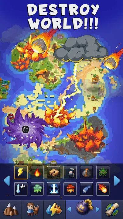 Define your game tactics and let your imagination run wild to create a paradise for humanity or a world apocalypse. Take a land conquest, summon a terrible earthquake or flood, meteor shower or volcanic eruption to wipe out all life on the face of the earth. Build, conquer and destroy your virtual world in one touch!
