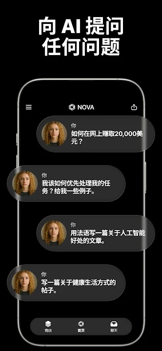 由最新的人工智能模型驱动的聊天机器人。让 Nova AI 写任何内容。